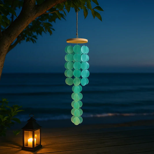 Home Decor Wind Chimes for Outside, Handcrafted Blue Gradient Shells